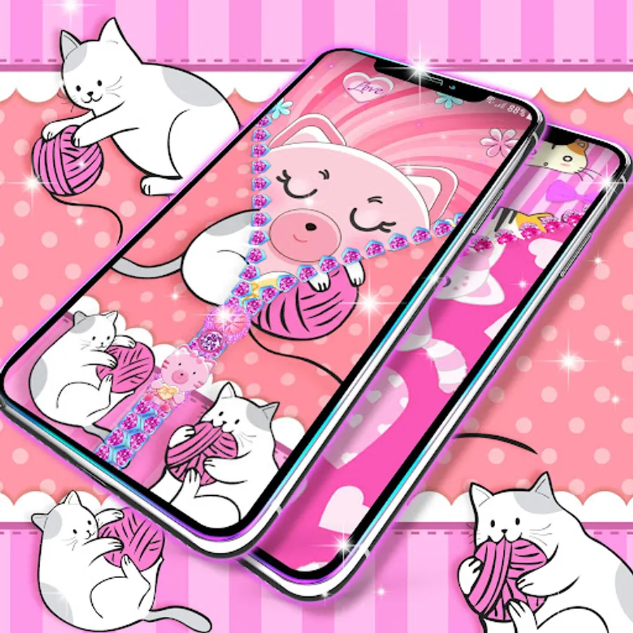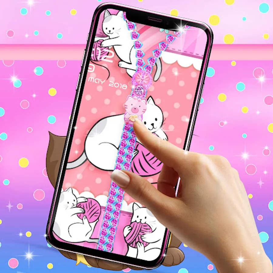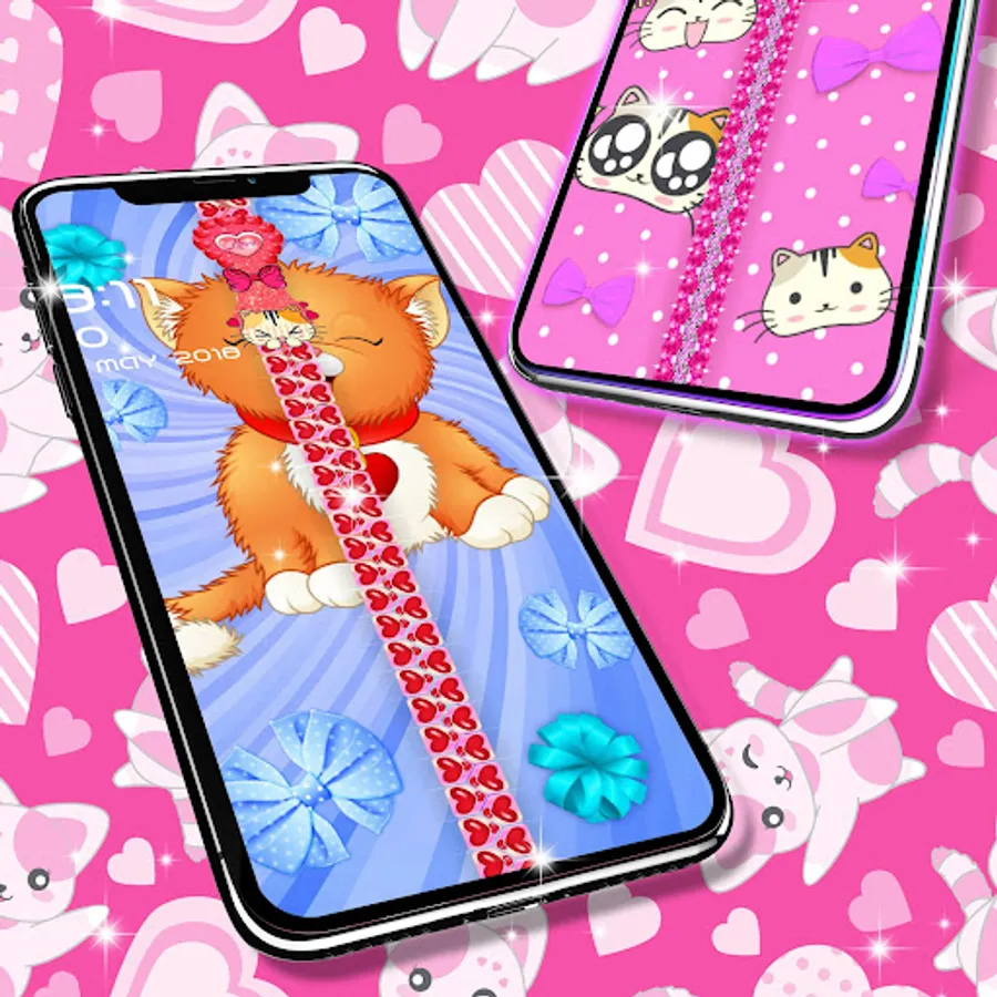 Would you like to unlock your phone in a really unique and customizable way? With our new Kitty lock screen, you have the option to choose your own wallpaper for the locker screen and for your device background. Also change the zipper style, color, and design with just a simple click until you find the best combination that works for you.
