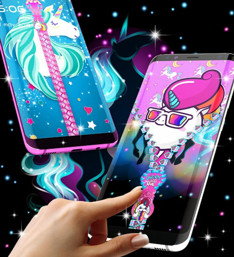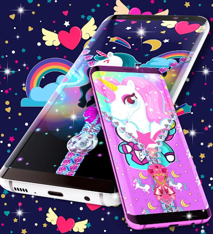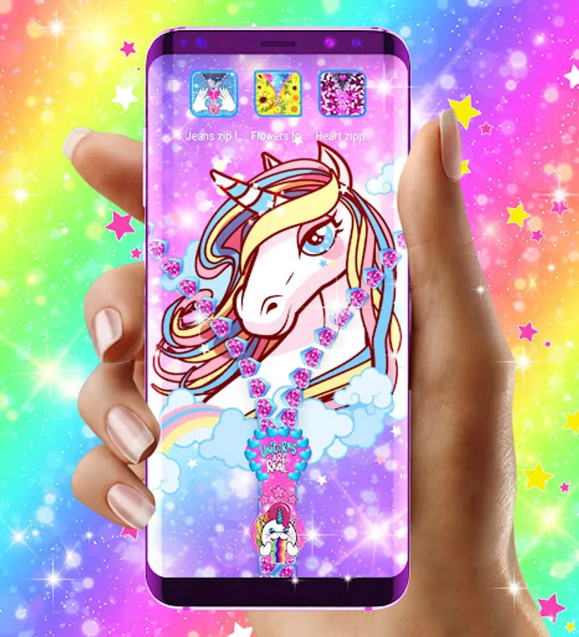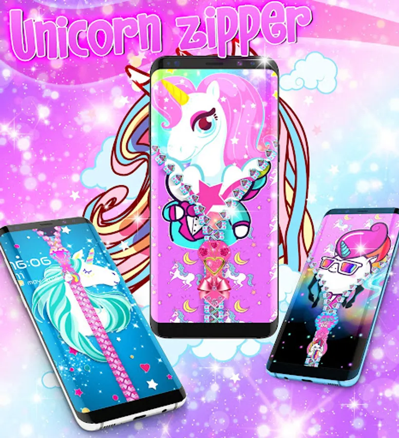 Unicorn zipper lock screen is a magic lock screen for android phones that unlocks using a zipper. Just drag down the zipper and that's it. The unicorn is a legendary creature that has been described since antiquity as a beast with a single large, pointed, spiraling horn projecting from its forehead.
