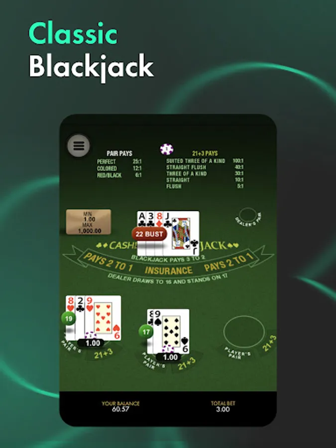 As mentioned above, you can enjoy lots of different types of Blackjack, Roulette, Baccarat and Video Poker. There’s something for everyone on this premier online Casino app.