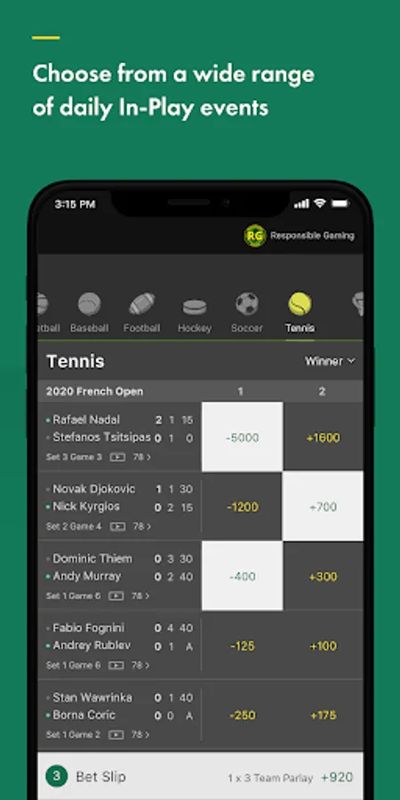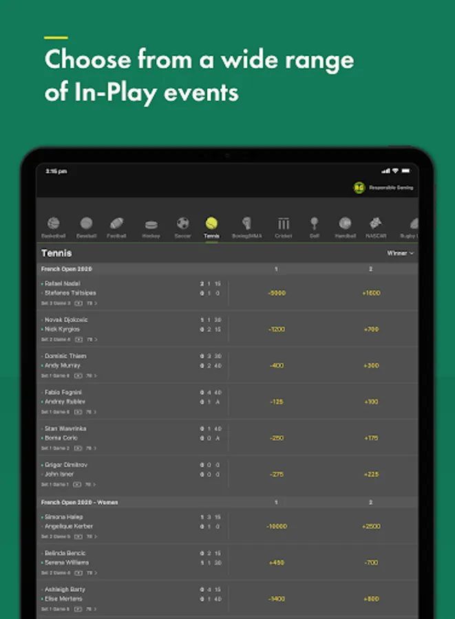 · Live In Game Betting: bet on a large selection of Live In Game markets, across a huge range of sports, including Baseball and Tennis, with the fastest, most extensive sportsbook service on the market.