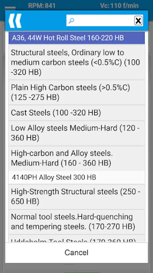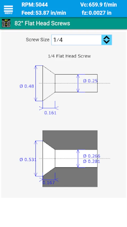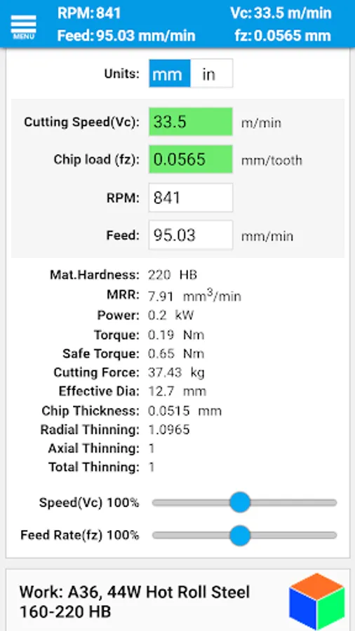 Calculate Speeds and Feeds simply by choosing your work and tool material.