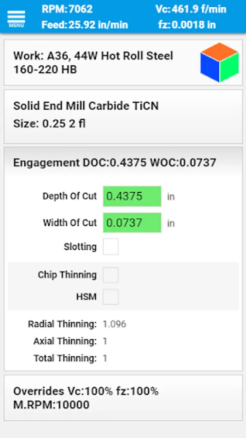 Calulate Chip Thinning and HSM - High Speed Machining.