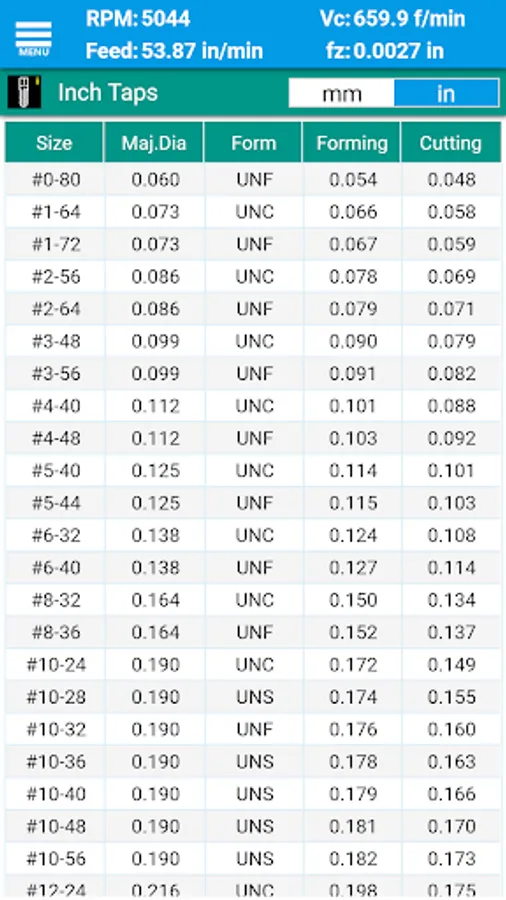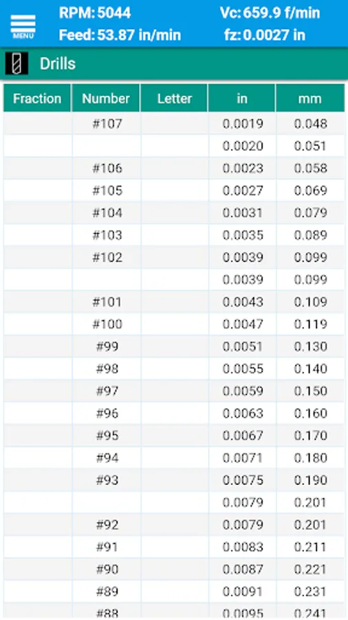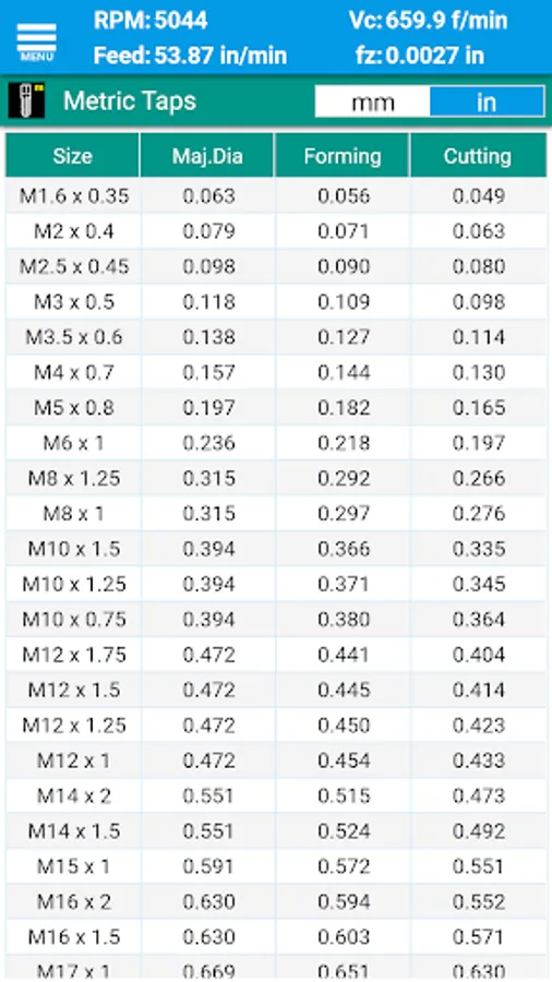 Charts: Drill chart, Imperial, Metric,Pipe Tap charts are also included in free version.