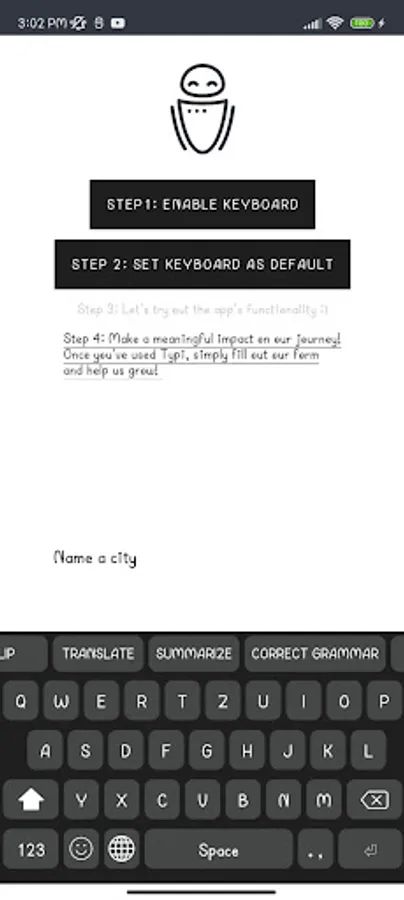Typi - a keyboard infused with cutting-edge AI technology that offers a diverse range of options, including rephrasing, answering, translating, and summarizing selected text.