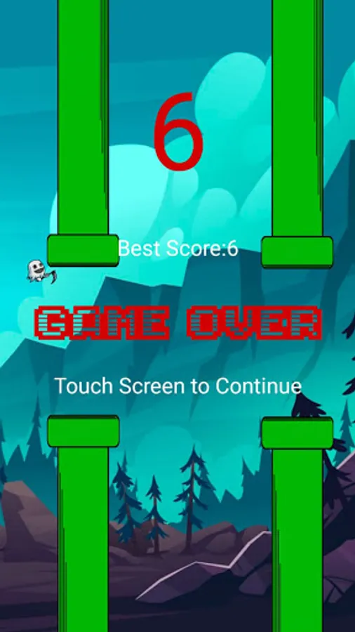 Keep the character on the path, floating under gravity's control. The challenge is to help the charismatic character go through the path without touching the pipes.