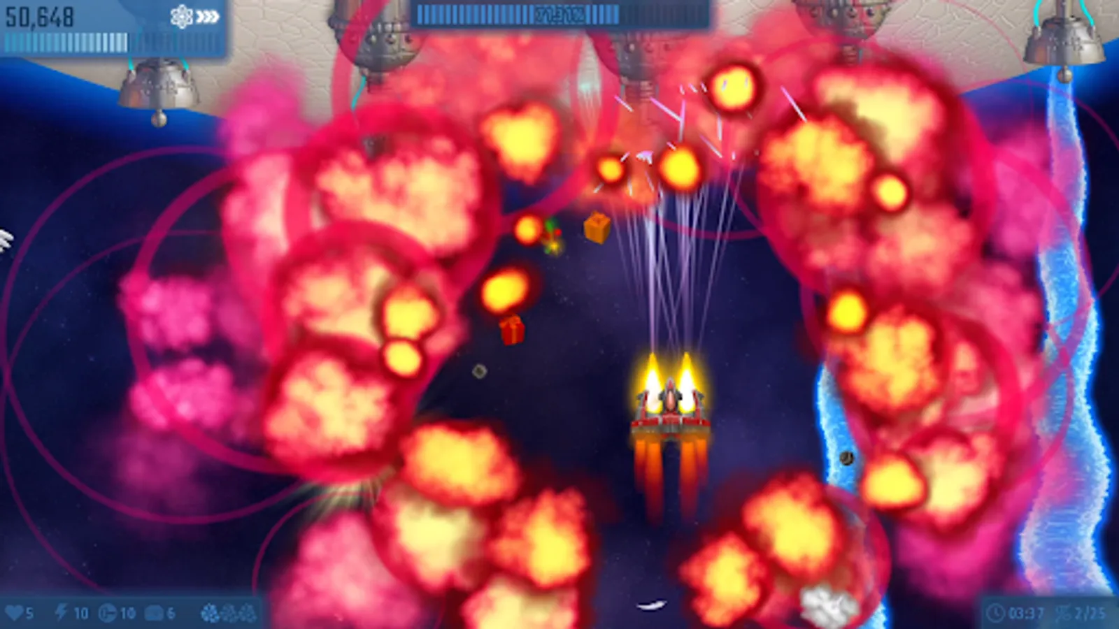 * Finger-blistering shooting action with over 200 chickens on-screen simultaneously
