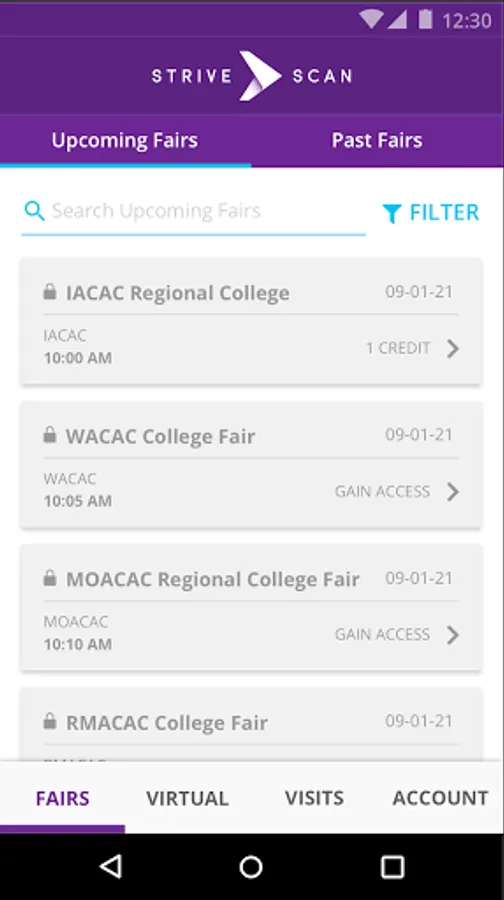 College representatives can use this app to find StriveScan fairs, buy credits, scan students, and export your data. Students register at StriveFair.com or StriveVisit.com and are instantly texted and emailed a barcode to their phones. You can scan their barcode with this app and view their name, high school, graduation year, GPA, SAT and ACT test score, academic interests, and contact info. Take notes, rate, or flag for follow up later. Call or text right from the app.