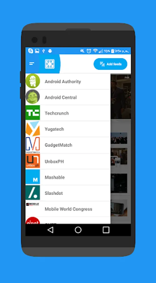 An application that integrates top tech news/blog sites in one app like android authority, android central, gizmodo, yugatech, mashable, slashdot and many more.