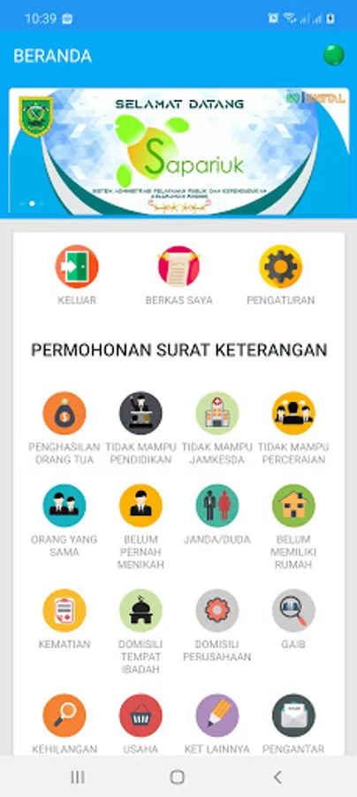 Online Service Application for Rinding Village, Teluk Bayur District, Berau Regency which includes: