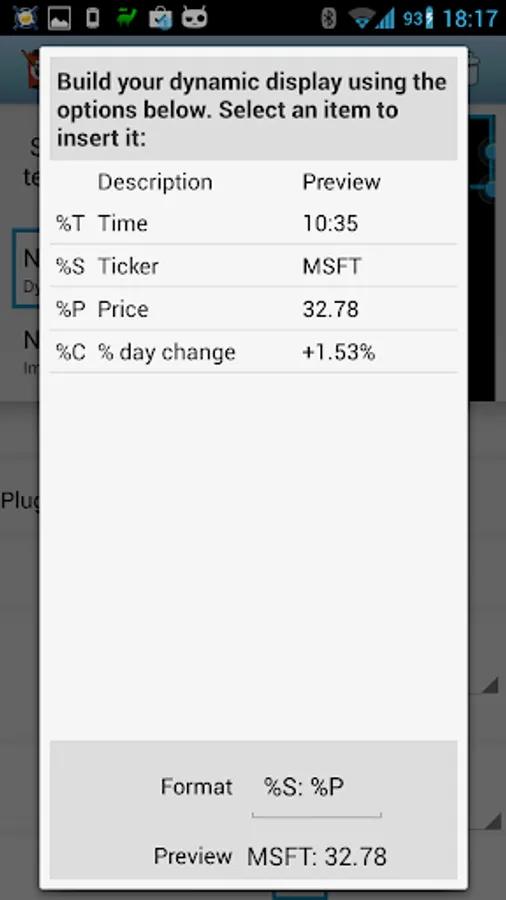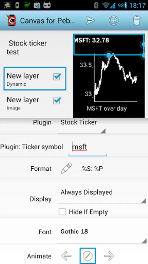 A stock ticker plugin for Pebble for Canvas ( https://play.google.com/store/apps/details?id=com.pennas.pebblecanvas ). Displays market prices and charts for US stocks using Yahoo finance data. Stock prices are updated every 15 minutes.
