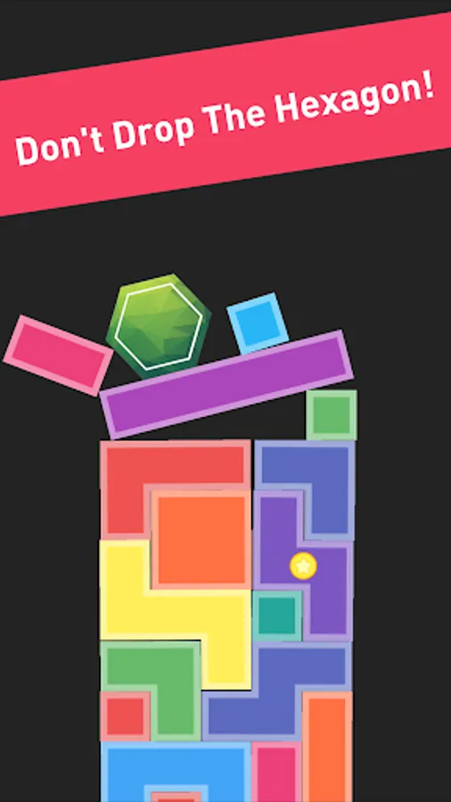 The goal is to keep the six hexagon figure on the tower of blocks and not let it fall off for as long as possible.