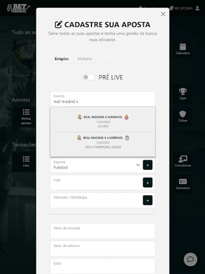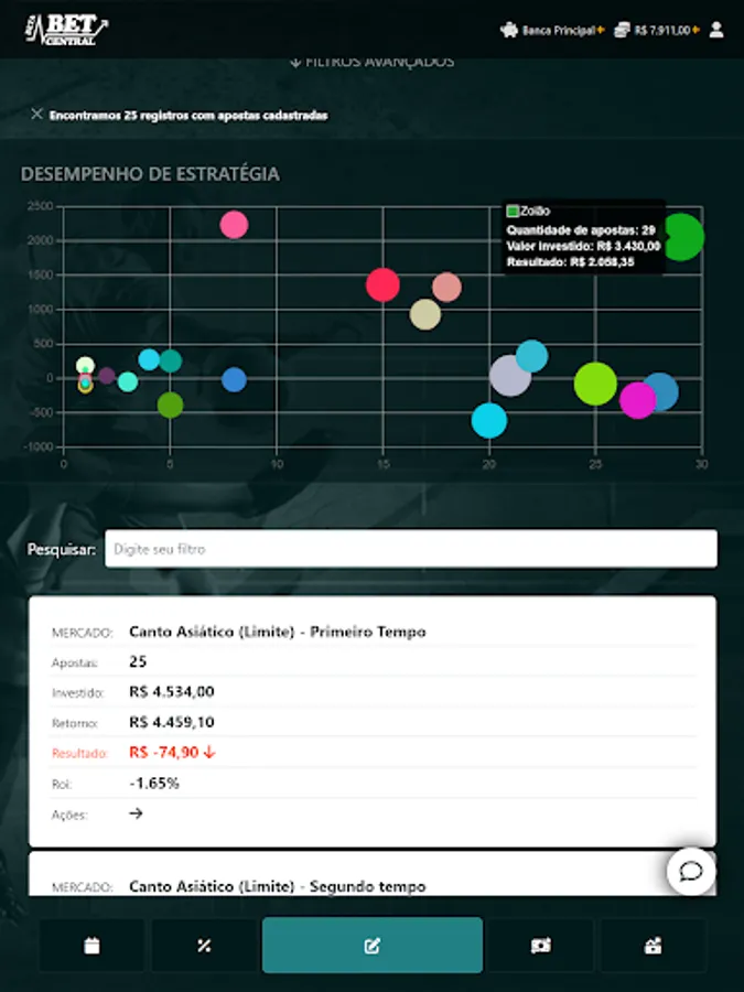 After the post-launch success of Betcentral, the most complete bankroll management platform for sports betting in the world is now also available in an APP, to make your day-to-day operations even easier. Now in the palm of your hand, manage your bankrolls, stakes, find out which leagues, markets, strategies, countries, tipsters, clubs and odds ranges make you win and lose money in sports investments. And so you can finally validate your methods.