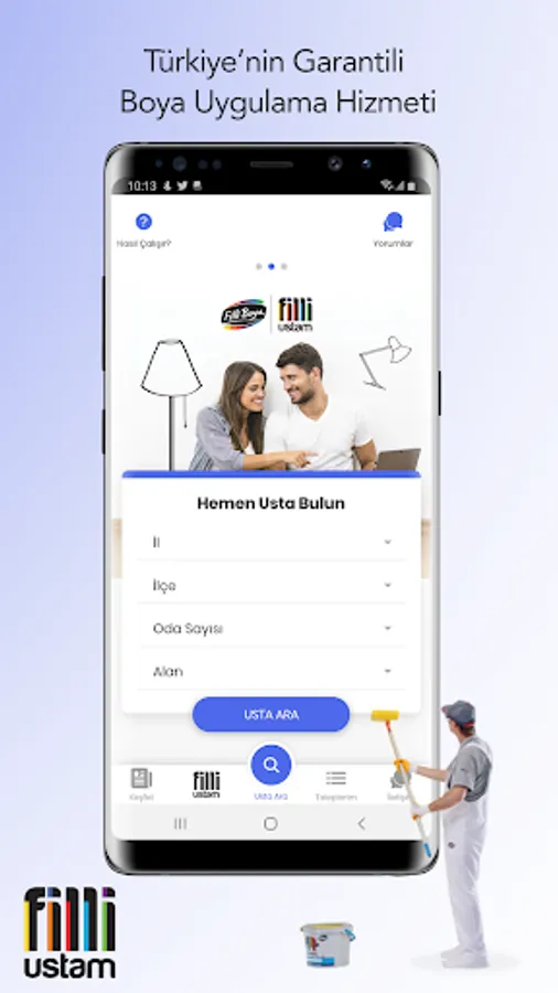 Filli Ustam, you can easily reach the nearest guaranteed paint masters; very advantageous application. Download now, choose the paint master you can safely entrust your home in just a few steps!