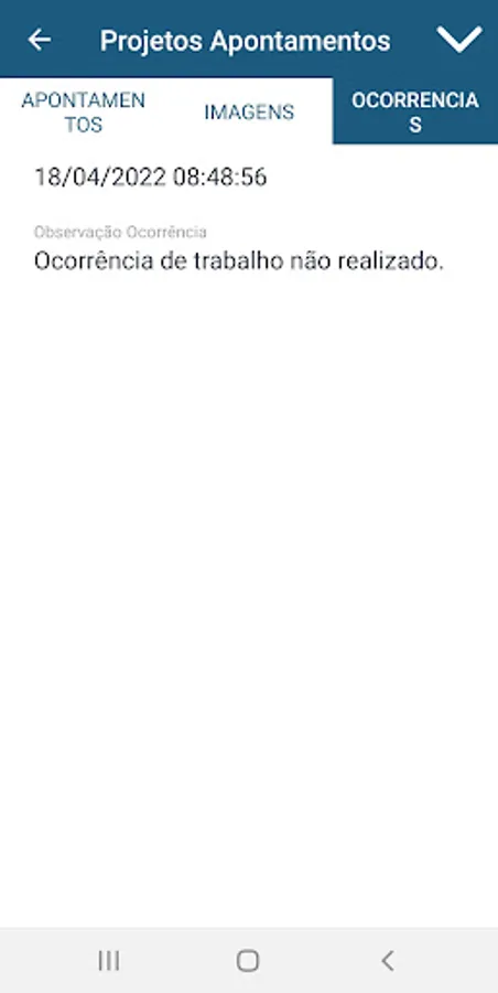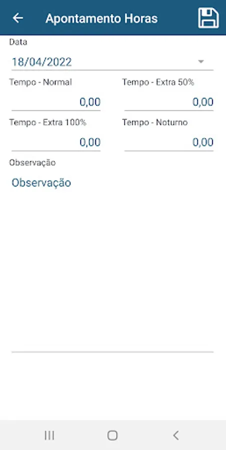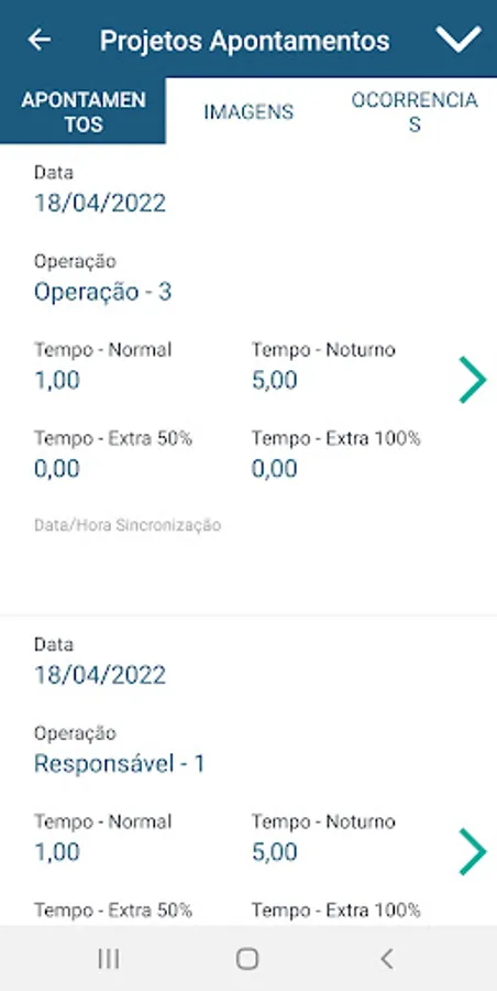 The application's main objective is to collect and record hours (Normal, Extra50%, Extra100% and Night) of field projects. Making it possible to include Photos of the progress of the Work, Information of Occurrences and Hours Worked of the operation. Avoiding the manual rework of information and streamlining the monitoring process, indicator reporting and time reports for each Project/Work carried out.