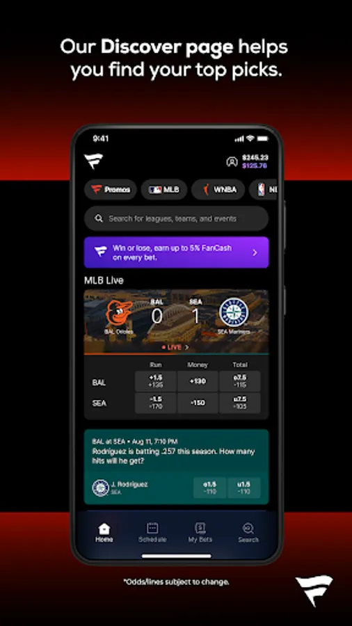 Looking for a better way to bet on NFL, NBA, NCAA football, NCAA basketball, MLB, NHL, PGA, Soccer, Tennis, UFC, Boxing, Motorsports, and more? We’ve got you: Fast signup. Easy betting. Promos that only Fanatics can offer. Bettable search results. A Discover page that helps you find your top picks. Easy to find live betting. Cash out both before and during live games to help recover your bet. Transparent withdrawals. And did we mention the rewards? Don’t even get us started on the rewards (but for real, we are “the most rewarding” for a reason).