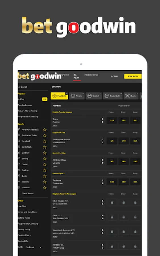 BET ON ALL YOUR FAVOURITE SPORTS WITH BETGOODWIN’S BETTING APP