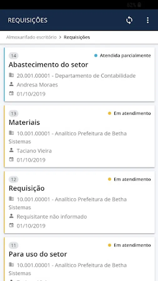This is the Warehouse app. With it the user of the Betha Sistemas Warehouse system can view and meet the material requirements received with more convenience and safety.