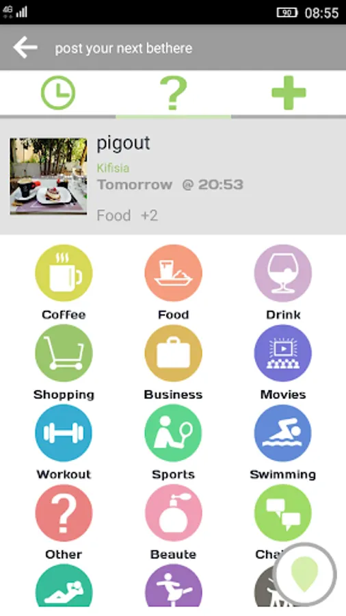 bethere is the coolest way to know in advance where friends & others are planning to be. Post what venue you'll be at and bethere will remind you to take a snap when you arrive!