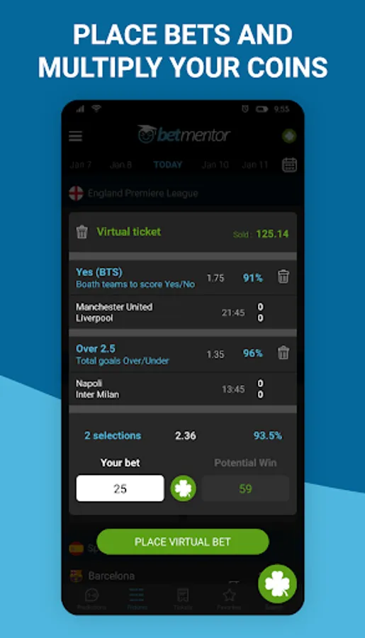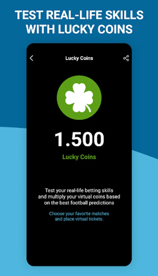 Don't waste real money anymore! Now you can play our betting tips directly in the app and earn more Lucky Coins.