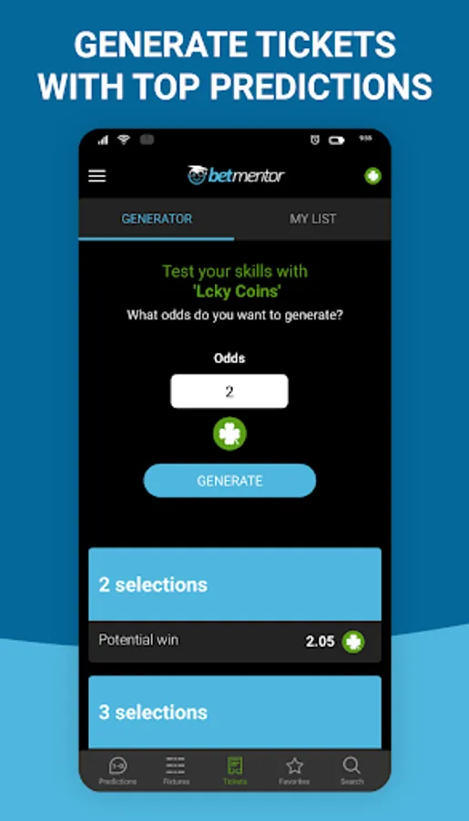 • you will receive 1000 Lucky Coins with which you can create virtual bets, both to test your gaming strategies or our betting tips or maybe you just want to try the Bet Generator.