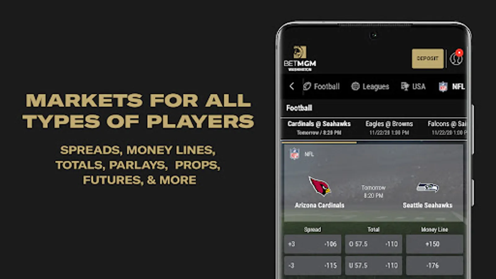 The BetMGM Sportsbook app brings you closer to the sports you love giving you real-time betting odds, and tons of different betting formats from moneyline and point spread bets to parlays and futures. Not to mention the player props and live, in-game betting options!