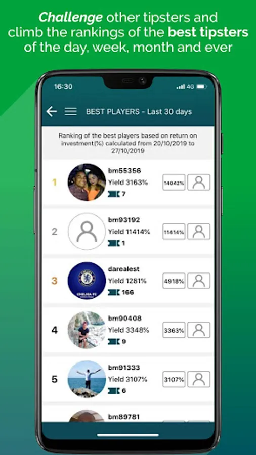 You can follow the best tipsters in the application, copy their bets and become yourself a reference point for the community .