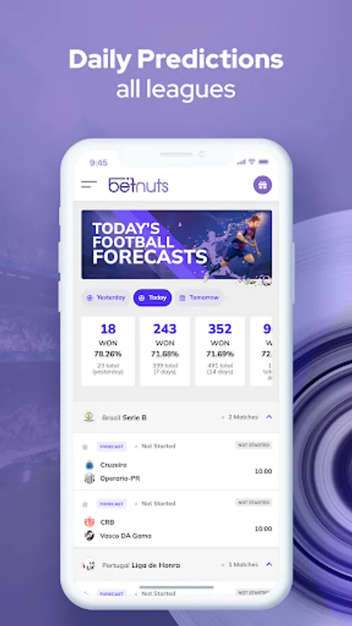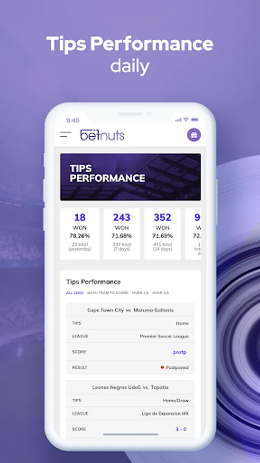 BetNuts covers over +850 leagues and major football cups including: scores, league standings, match events, team line-ups, pre-matches odds, statistics and match predictions.