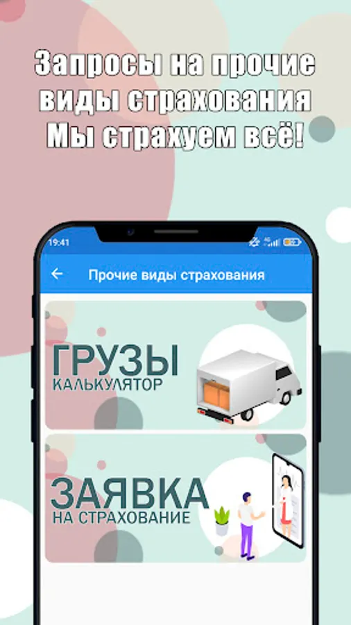 In the application, you can send an application for insurance for other types (cargo, insurance of legal entities, property, liability, etc.). A calculator for cargo is available (one-time and general contract), an application for insurance through other types.