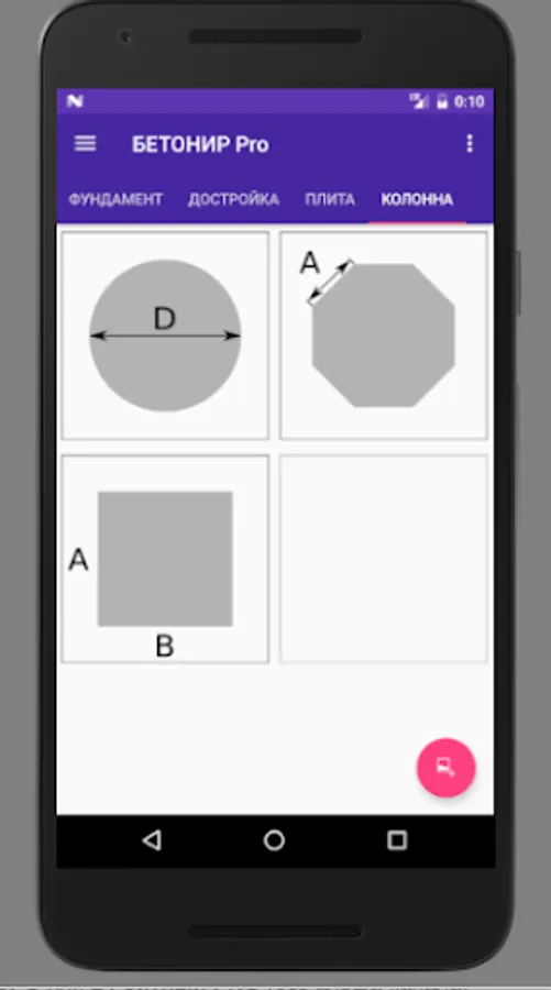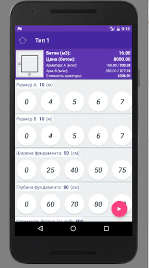 This app allows you to quickly calculate the number of concrete and reinforcement for your basement or other structure