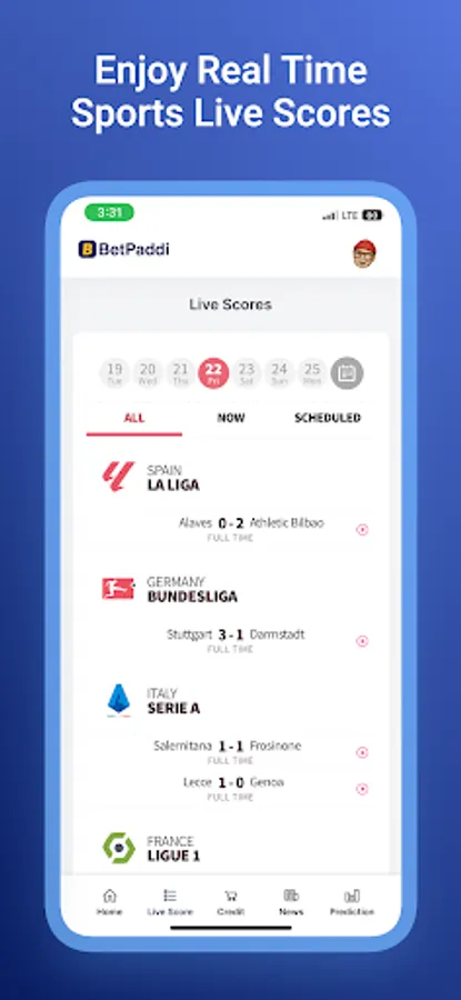 Stay up-to-date with real-time scores for all your favorite sports and matches. Whether it's football, basketball, tennis, or any other sport, Betpaddi provides you with instant score updates, ensuring you're always in the know. Never miss a critical moment in your game, even if you can't watch it live.