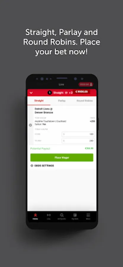 - In-Game wagering- Straight, Parlay and Round Robin wagers