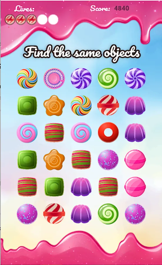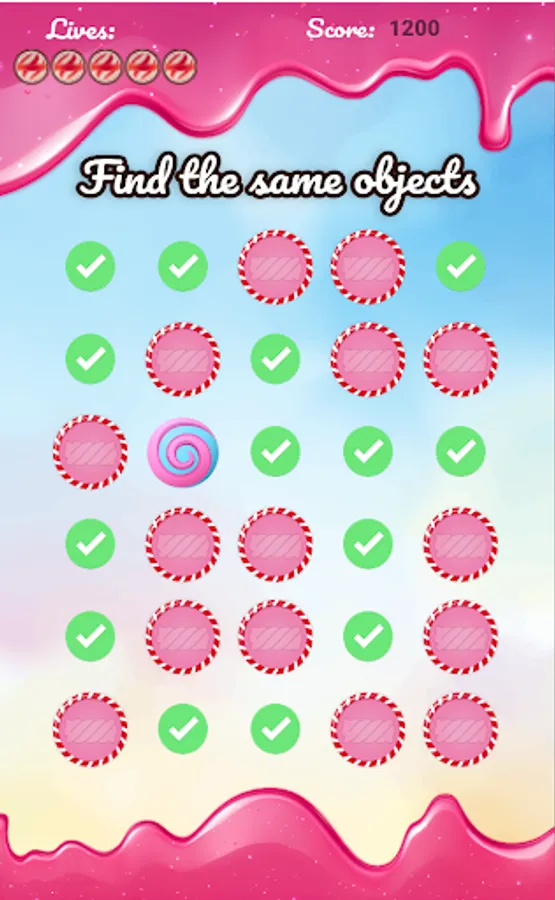 If you find the pair, both candies will hide and you will see a couple of comparisons indicating that you discovered their equal.