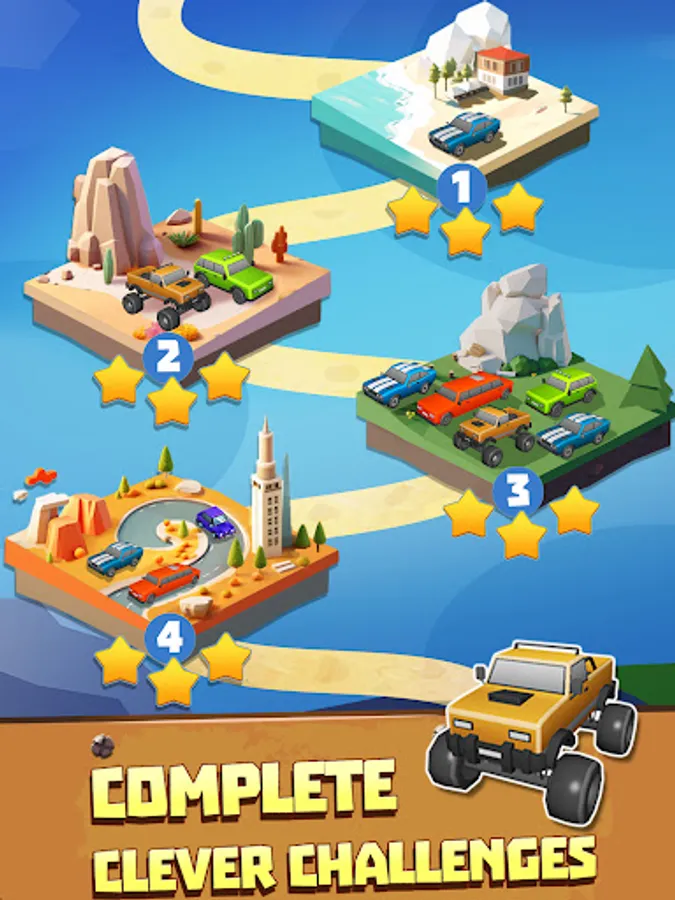 🚗 PLAY multiple different types of levels and maps with simple controls. Just swipe to move the cars!