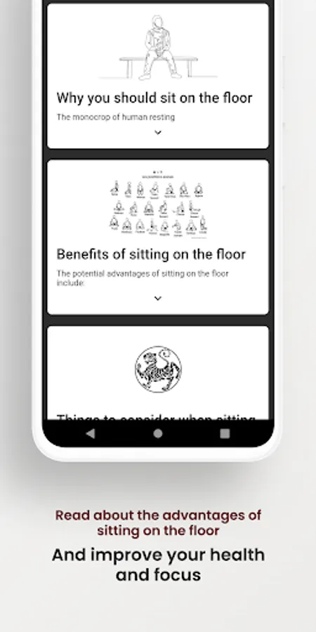 The Better Sit - Floor app not only helps you by reminding you to change positions, but also suggests a new sitting position every time unit.