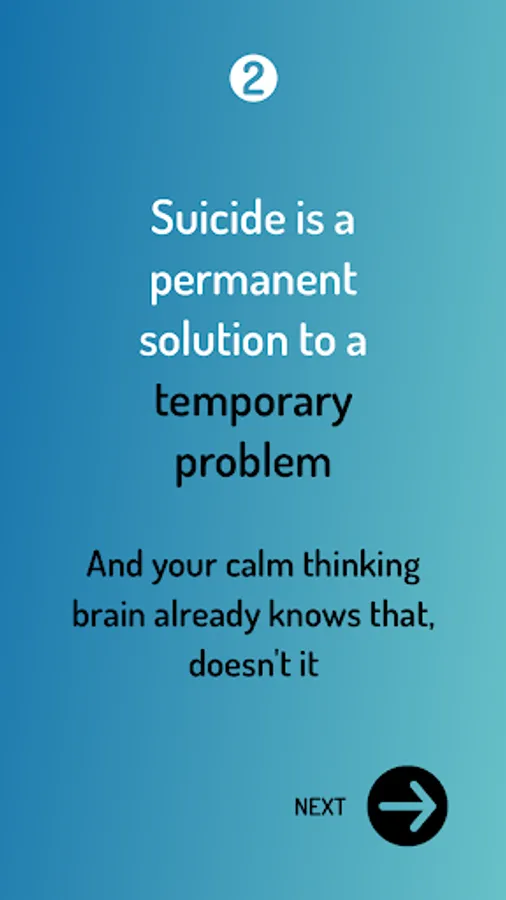 We’ve designed this app to simply help you press your own stop button should suicidal thoughts come to you. Remember ‘suicide is a permanent solution to a temporary problem’. And your calm thinking brain already knows that, doesn’t it.