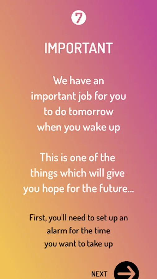 Importantly the app will help you experience a soothing night of restful sleep, so you can wake the next day with an important task for you to complete. A task that will help save your life.