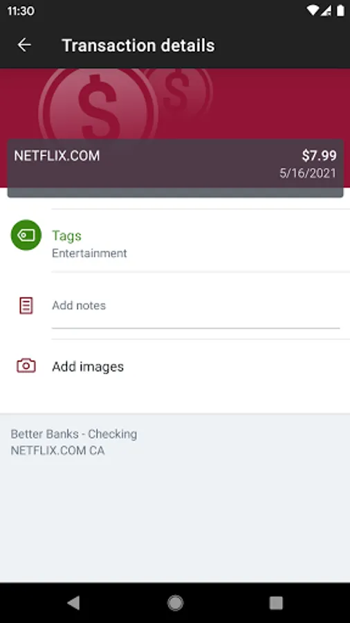 -Keep your transactions organized by allowing you to add tags, notes and photos of receipts and checks.