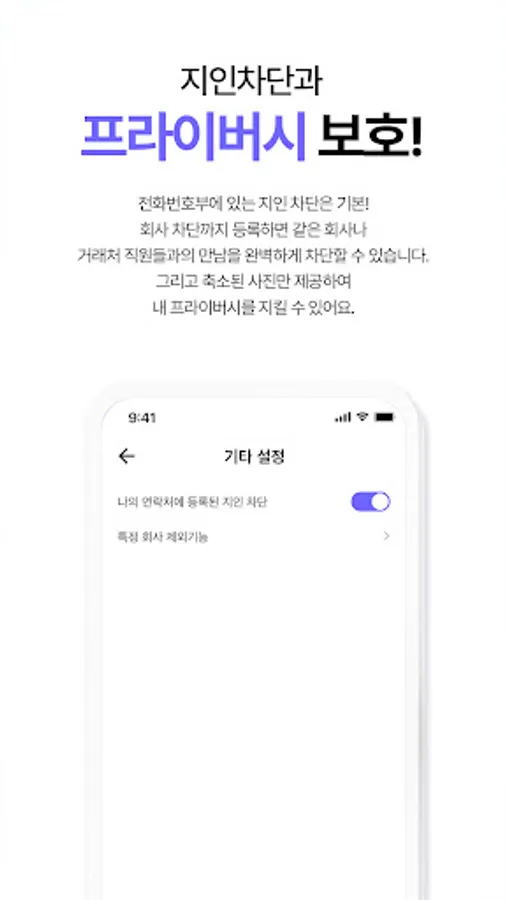 Blocking acquaintances in the phone book is basic! If you register to block companies, you can completely block meetings with employees of the same company or business partners. And I can protect my privacy by providing only reduced pictures