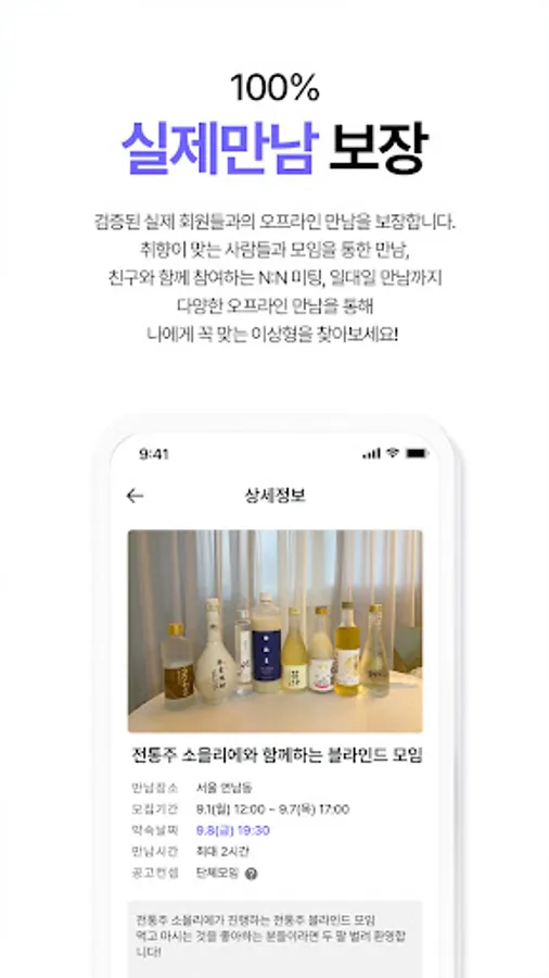 Blossom guarantees offline meetings with verified real members. Find the ideal type that suits you through a variety of offline meetings, from meetings with people with the same taste, N:N meetings with friends, and one-on-one meetings!