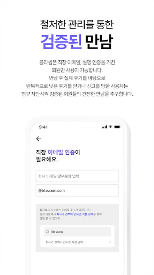 Blossom can only be used by members who have gone through work email and real name authentication. Based on actual reviews after meeting, users who repeatedly receive low reviews or are reported are permanently blocked to pursue healthy meetings with verified members.