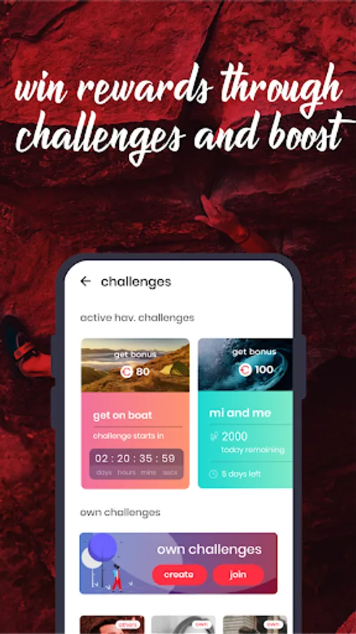With hav. you can set your own challenge too. Challenge yourself and challenge your friends to achieve it. Each time your friends join, you are rewarded with gems π too!