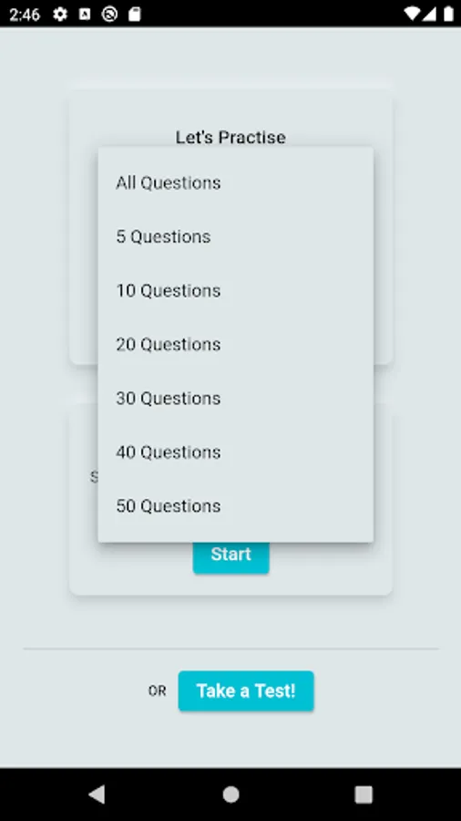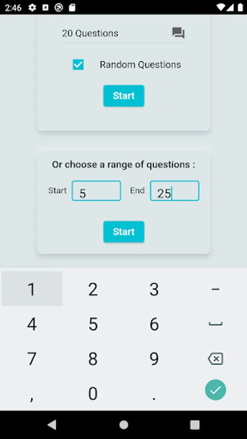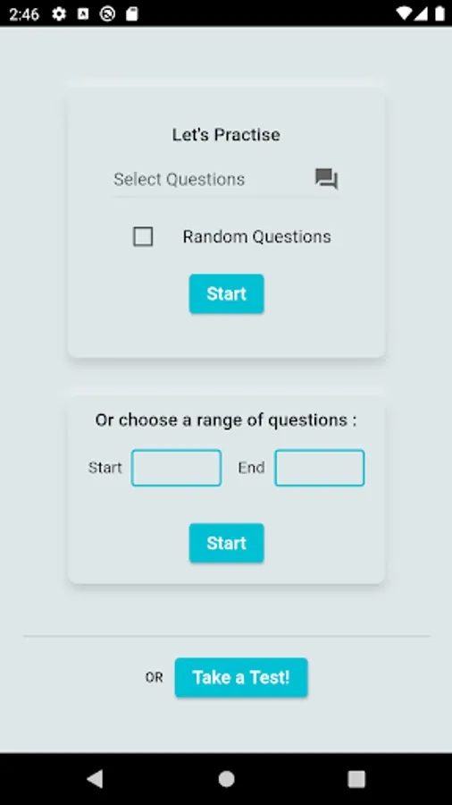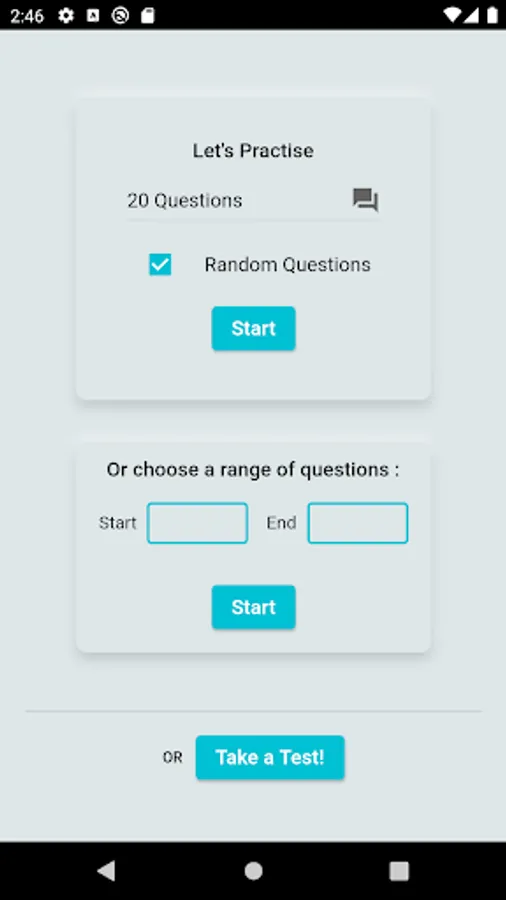 It supports both practice mode either with random selection or a range of questions and exam mode with a timer and a score feedback.
