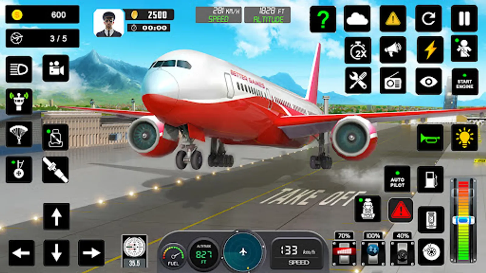 - Realistic airplane engine sounds