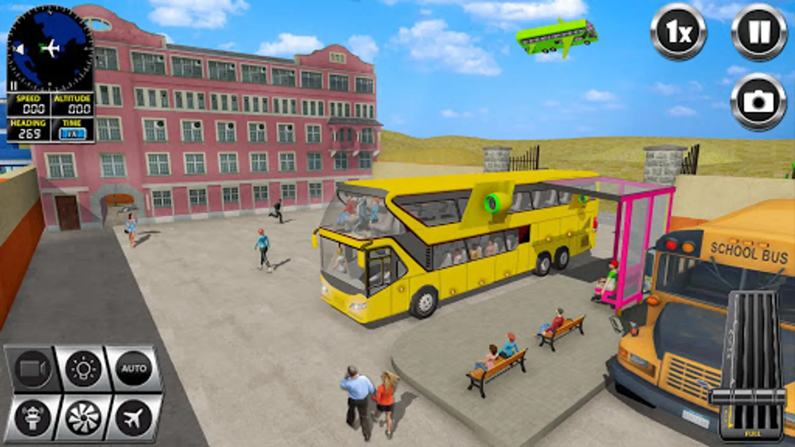 Not anymore, try this extreme flying bus driving simulator game, and get to places quicker, faster and even cheaper at times. So change your bus to flying mode, just like in all flying games or flying car games, and keep traveling the distances a lot faster than you can think of.