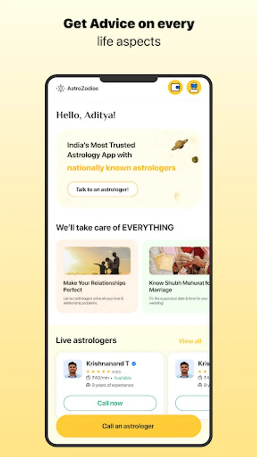 AstroZodiac is one of the best Online Astrology App where you can get the most accurate predictions. Have a live Call with an online astrologer, Tarot readers.