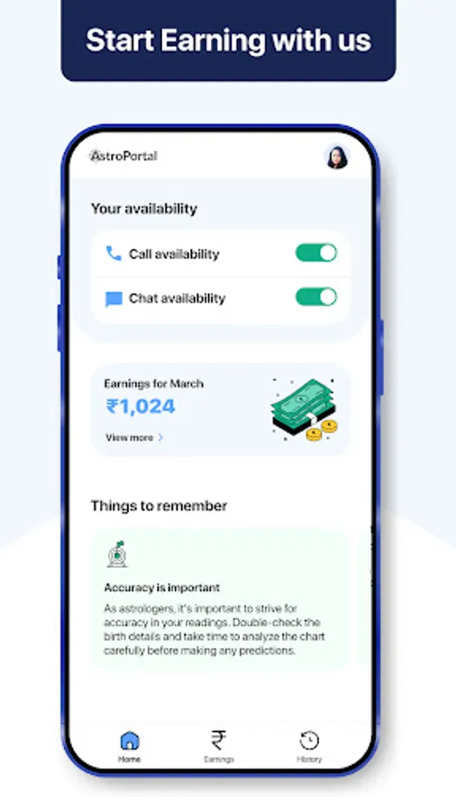 Just one click and you can choose to be online or offline. With the AstroPortal app, you get the freedom to choose your working hours as per your availability. Earn whenever you want!