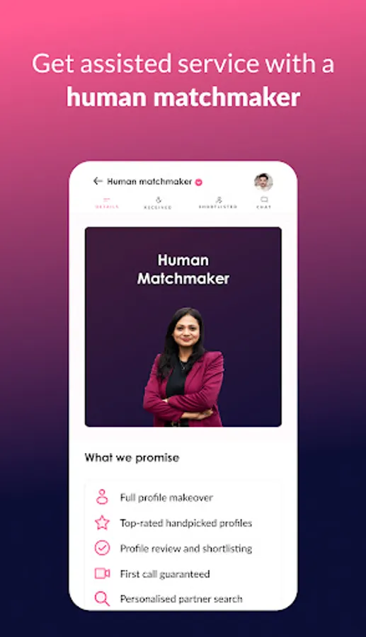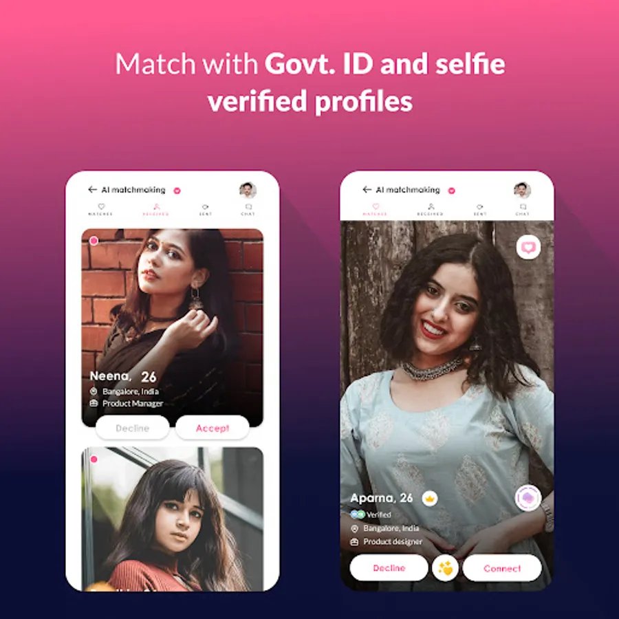 At this matrimony and matchmaking platform, you only get Selfie and Govt ID-verified profiles as per your compatibility & interests. We provide authenticated shaadi-compatible matrimony & shaddi profiles & filter non-serious ones from our matchmaking & marriage app.