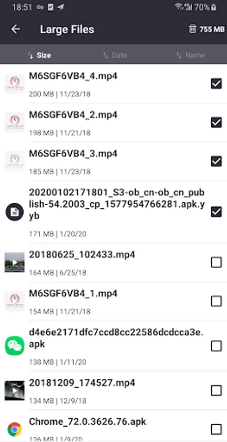 ★ Large Files: Quickly find out all the Big files/Large files on your phone. Support sort by size/date/name.