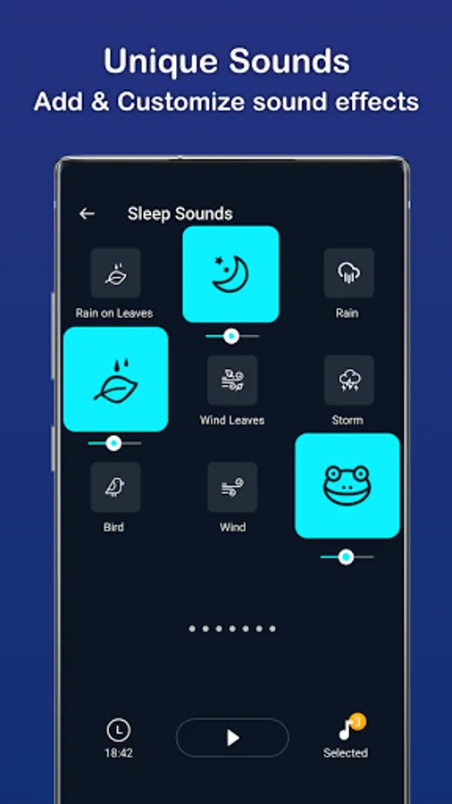 🎑You can mix your sleep meditation, relaxing sounds or nature sounds by yourself to fall asleep fast or stress relief and anxiety relief, have a power nap in a nap app by various sounds: ocean sounds free, rain on leaves, rain, storm, thunder, wind, river, forest, fire,...