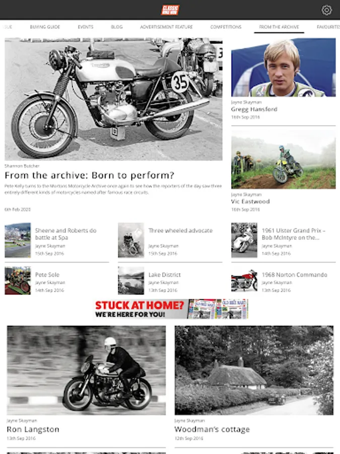 The Classic Bike Hub gives you news, views, features and reviews from the UK’s biggest classic motorcycle magazines. It is the essential app for any classic motorcycle lover. From the sump to the handlebars, this app covers everything from prewar and off-road machines all the way to modern classics. Collating content from Classic Bike Guide, The Classic MotoryCycle, Old Bike Mart, Classic Racer, Real Classic and Classic Dirt Bike, there is no other place for classic bike news.